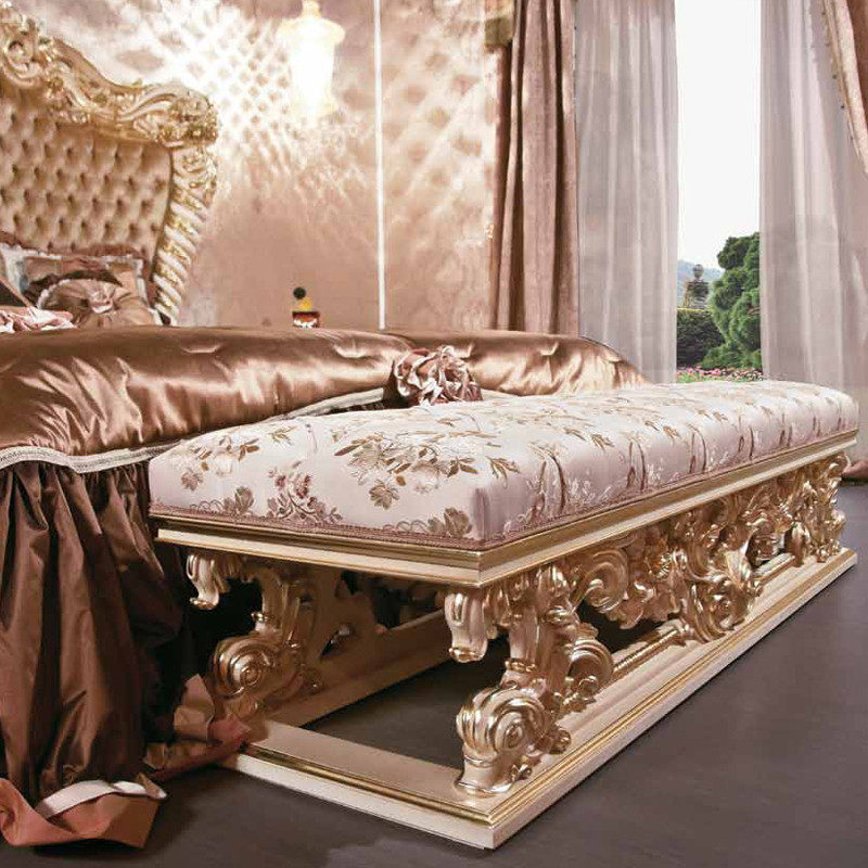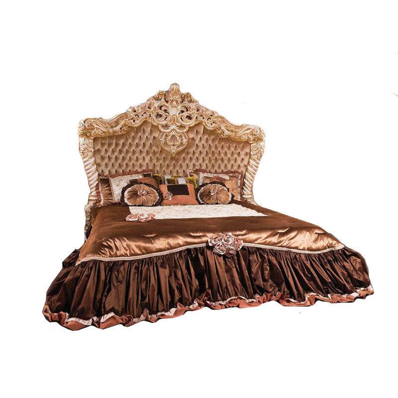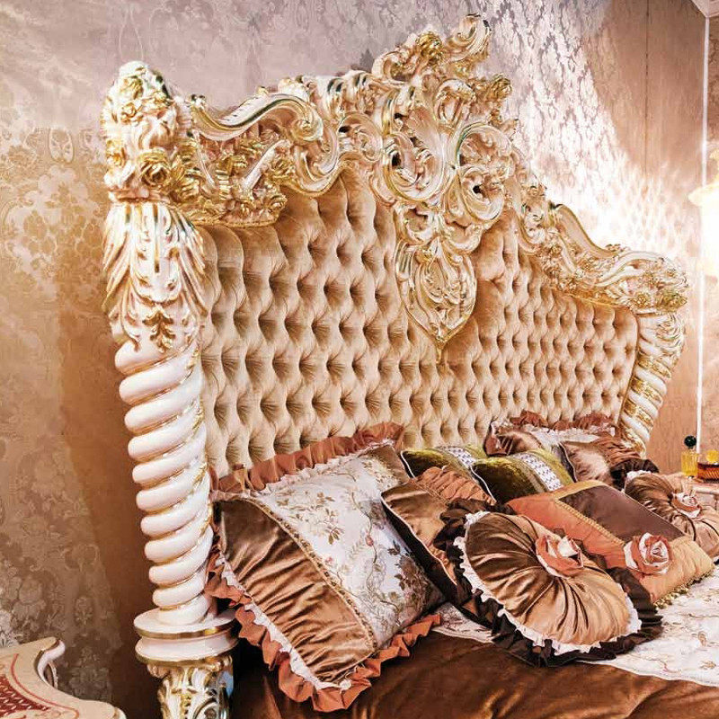 Italian luxury double bed European solid wood carved bed villa bedroom wedding bed court bed fabric princess bed