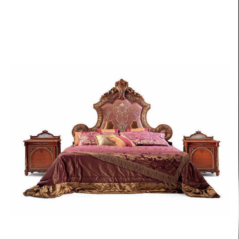 Eurostyle luxury double bed Italian palace Luxurious Cloth Art Bed Wedding Bed Princess Bed Master Bed Sculpture Flower Large Bed