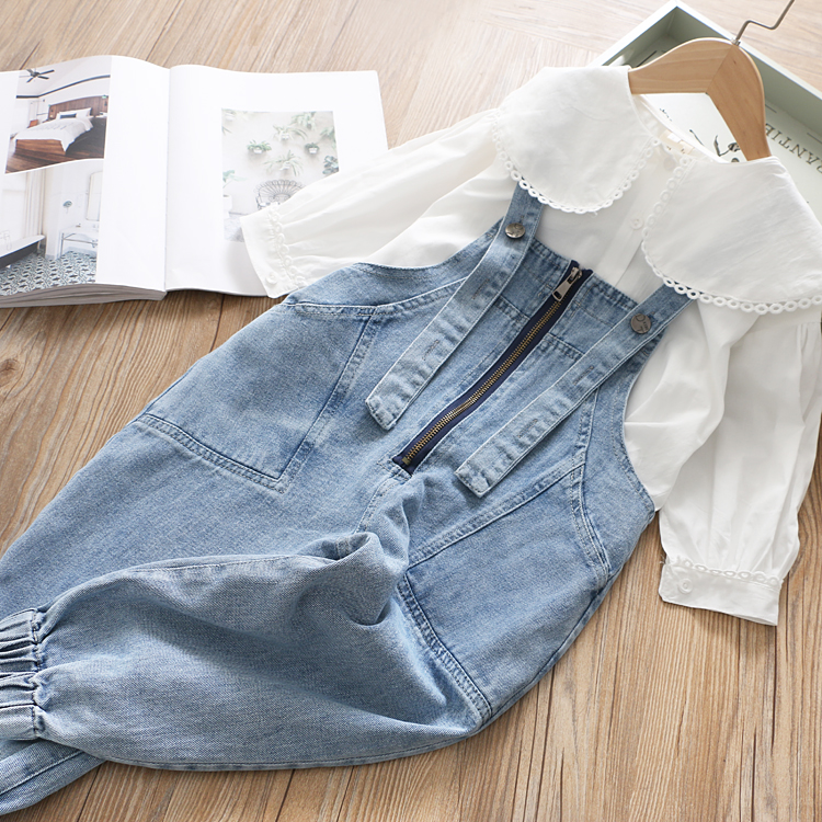9 99 seconds to kill girls denim holding baby bag pants middle and small children Western style children's baby loose trousers suspender pants thin section