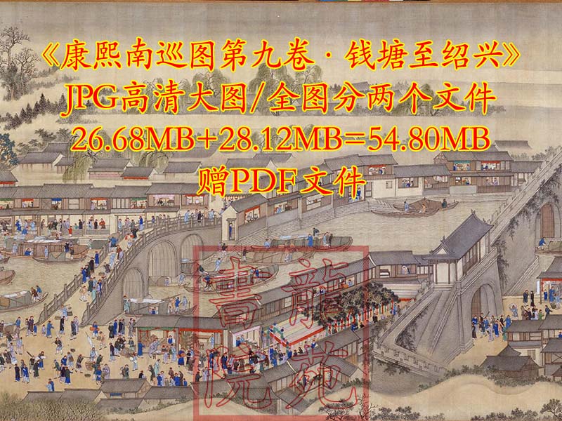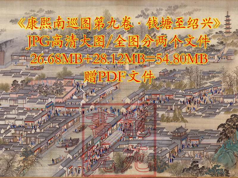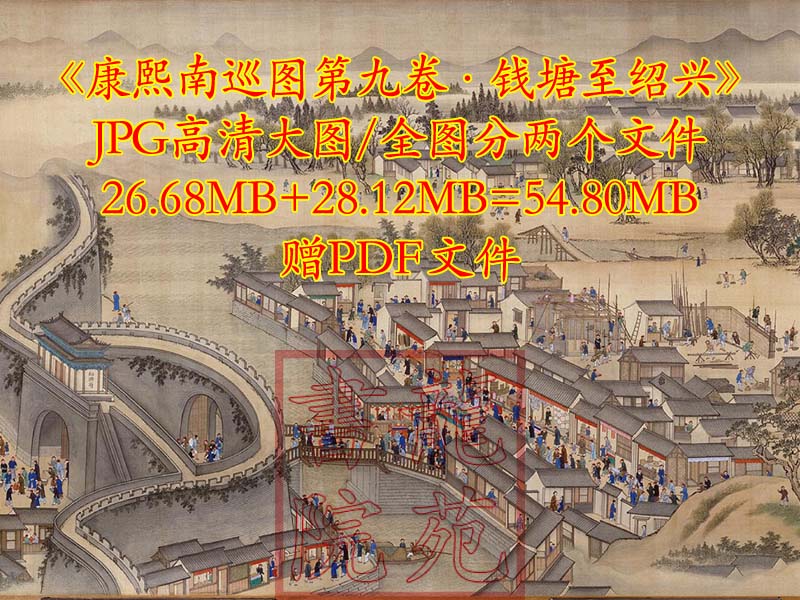 JPG HD large map "Kangxi Southern Tour Map Volume 9 Hangzhou to Shaoxing" Qing Wang Fei 54.80MB