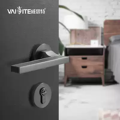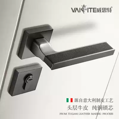 Westout leather door lock indoor bedroom door lock magnetic mute room simple wooden door two-piece lock home black