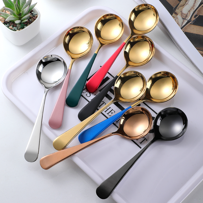 304 pink gold round spoon 304 golden round spoon 304 black gold round spoon 304 rose gold round spoon 304 platinum round spoon 304 green gold round spoon 304 silver round spoon 304 titanium black round spoon 304