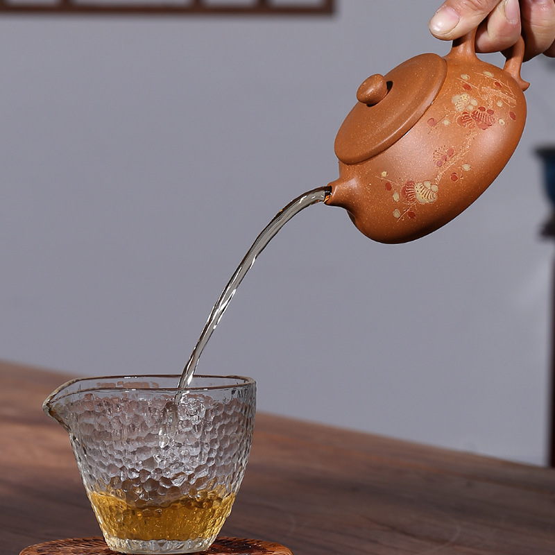 Yixing Purple Sand Pot Famous All Handmade Original Mine Downhill Slope Clay Plum Stone Ladylike Kung-fu Sketching and Sketching Tea tea Set