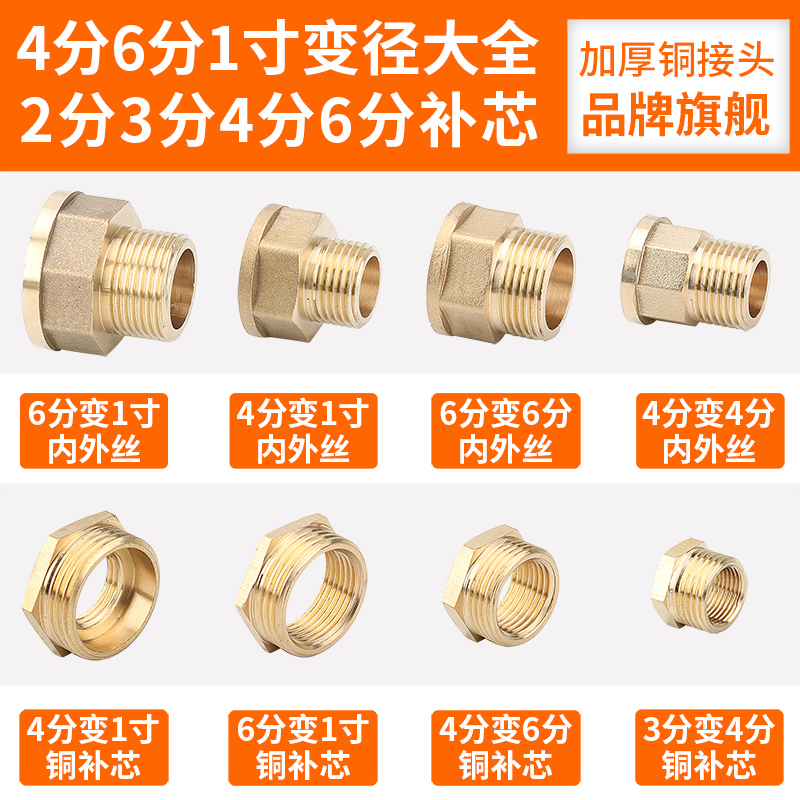Thickened all-copper variable diameter core connector 4 minutes to 6 minutes 1 inch 3 minutes different diameter double outer wire inner and outer wire conversion accessories