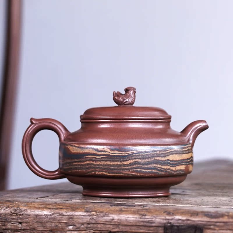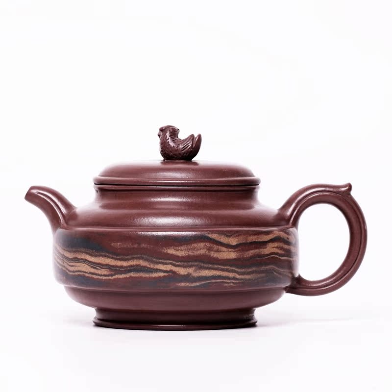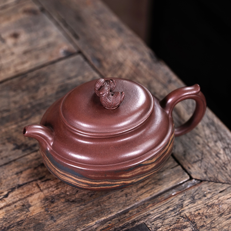 Early one factory Cultural Revolution purple sand pot Taiwan return old pot famous Zhou Guizhen whole handmade old purple mud Mandarin duck pot