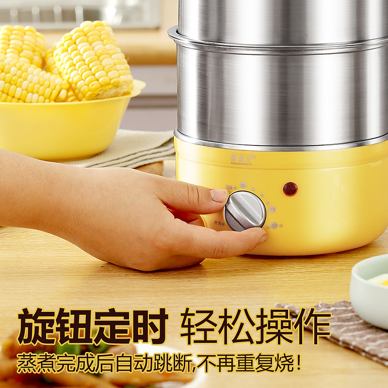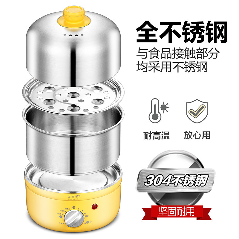 Timing stainless steel 304 egg cooker double-layer household egg steamer Small 1 person steamed egg custard breakfast machine artifact