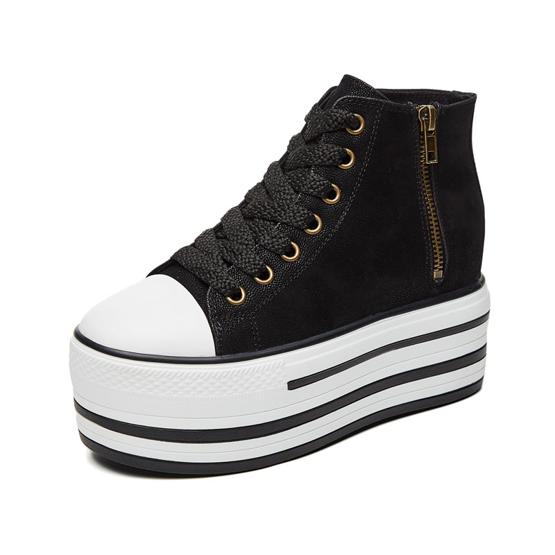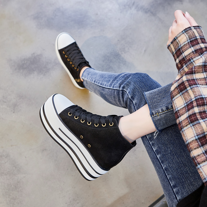 Net Red Casual Little Sub High Drum Shoes Woman Retro interior heightening 100 hitch plate Shoe thick bottom pine pastry Lace Up Short Boot Tide
