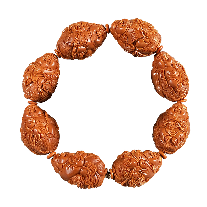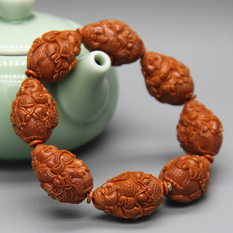 Olive core core carving big seed Qilin God of Wealth bracelet Zhoushan Su Gong pure hand carving eight god of wealth male bracelet