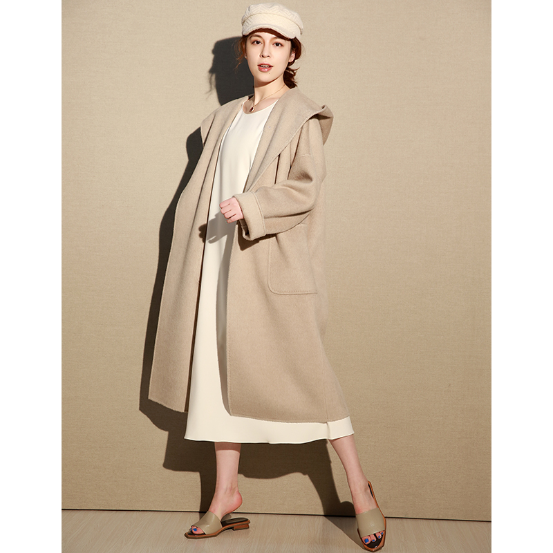 NZ High-end Light Lavish Oat Color Limp Hat Bathrobe Bifacial Camel Coat Woman Mid-Length Version Advanced Senses Autumn Winter Coat