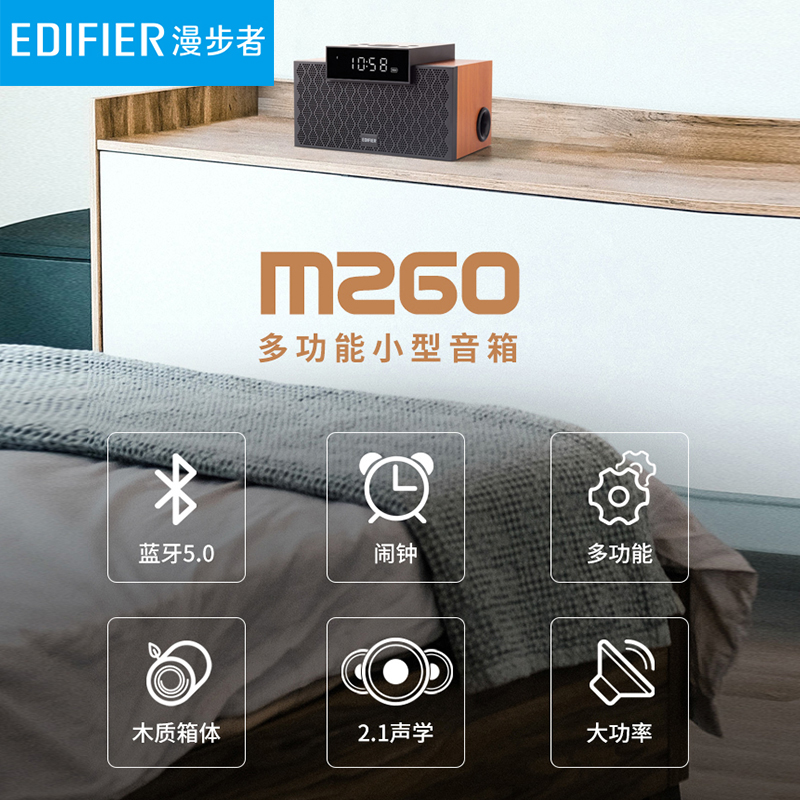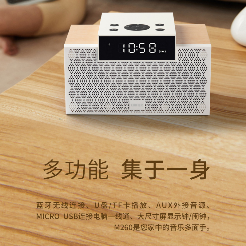 Edifier M260 wireless bluetooth speaker smart alarm clock home wooden small high-quality bass mini