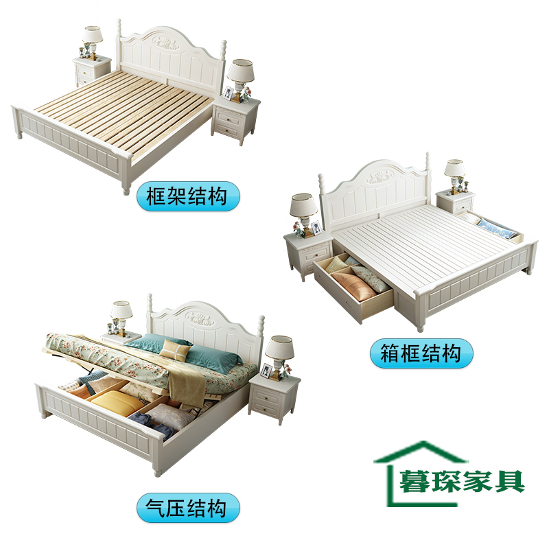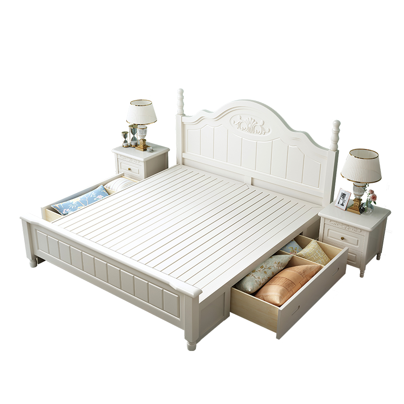 American full solid wood bed 1 8 meters single double master bedroom White 1 5 Light luxury modern simple Korean pastoral princess bed