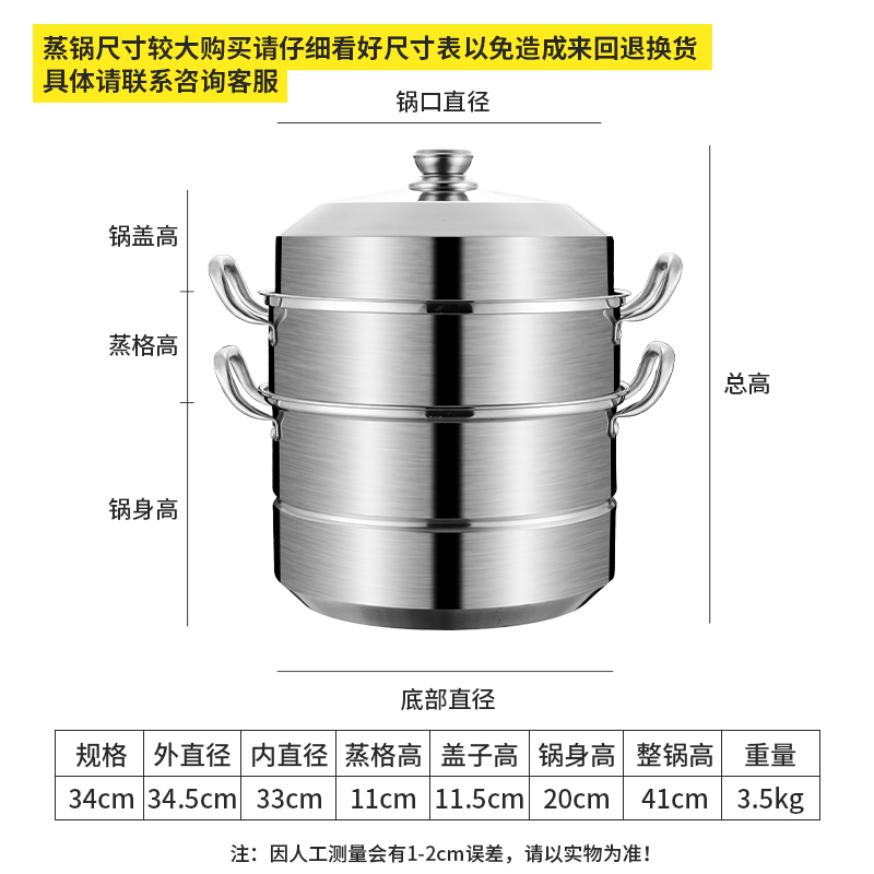 Steamer household 304 stainless steel thickened 34cm large steamer large capacity three layers more than 2 layers steamed buns steamer