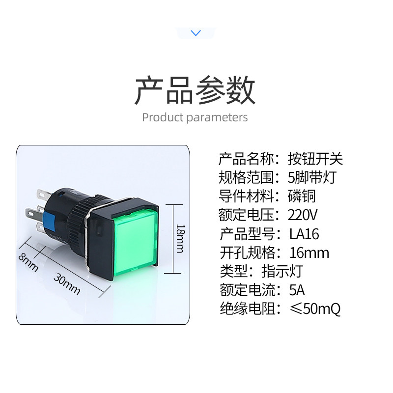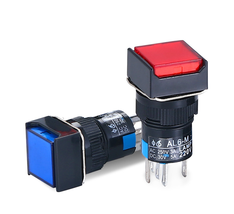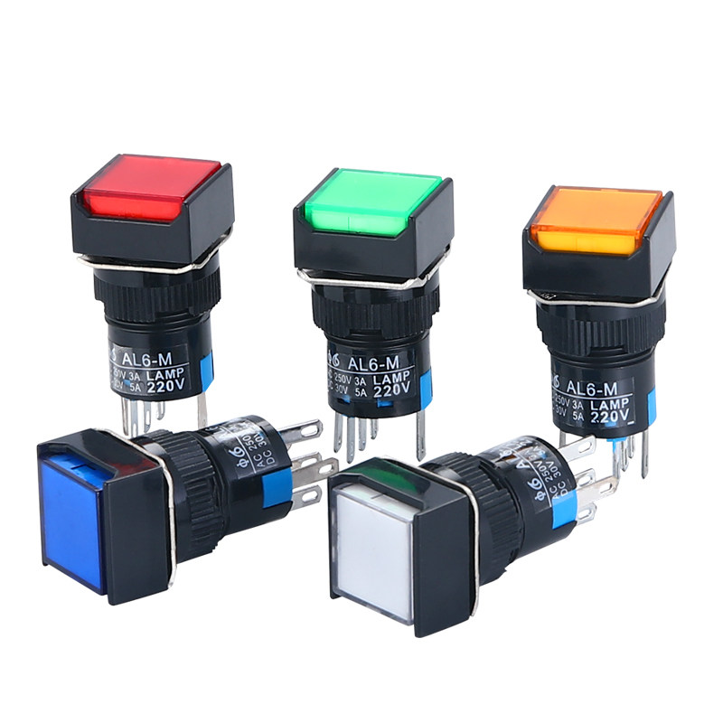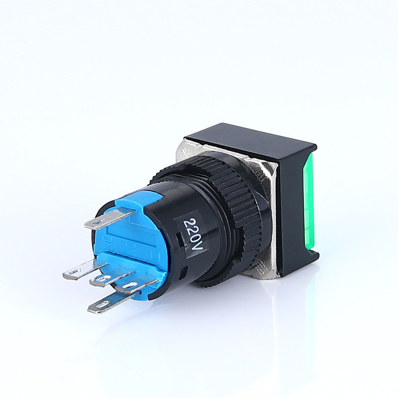LA16F button switch with light self-reset self-locking square button start power button 220V 16MM