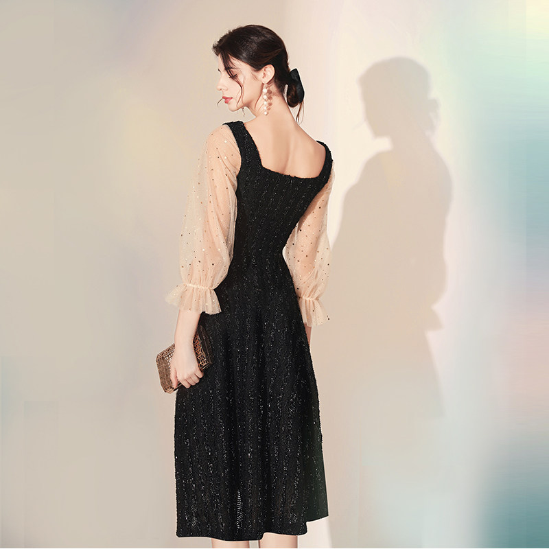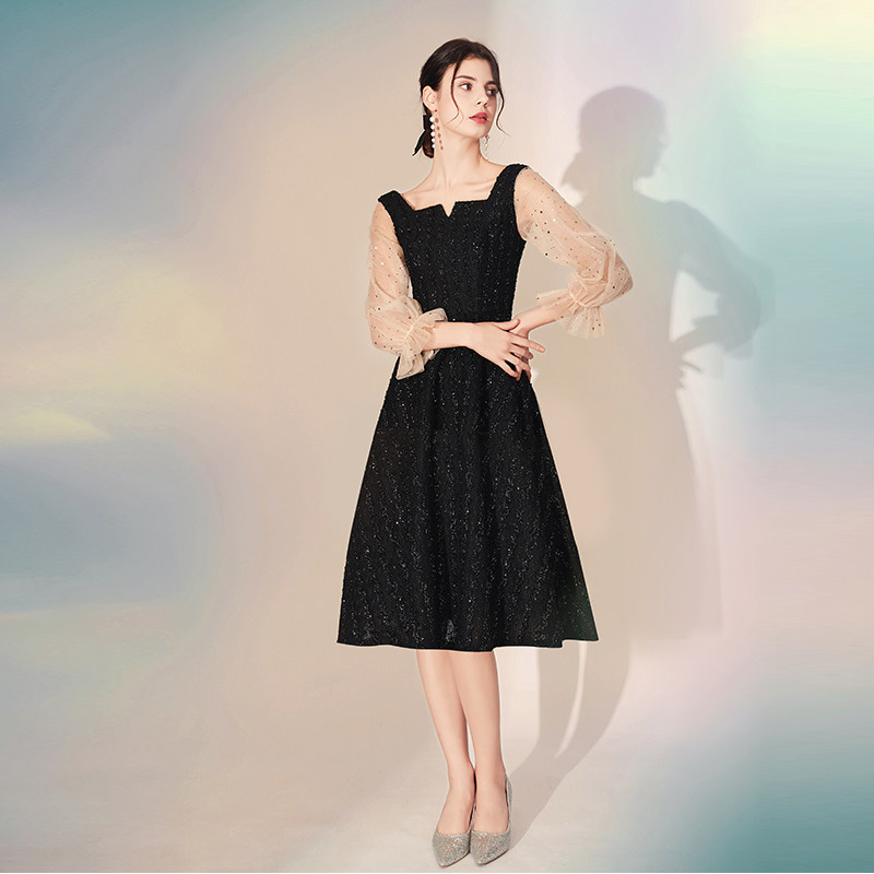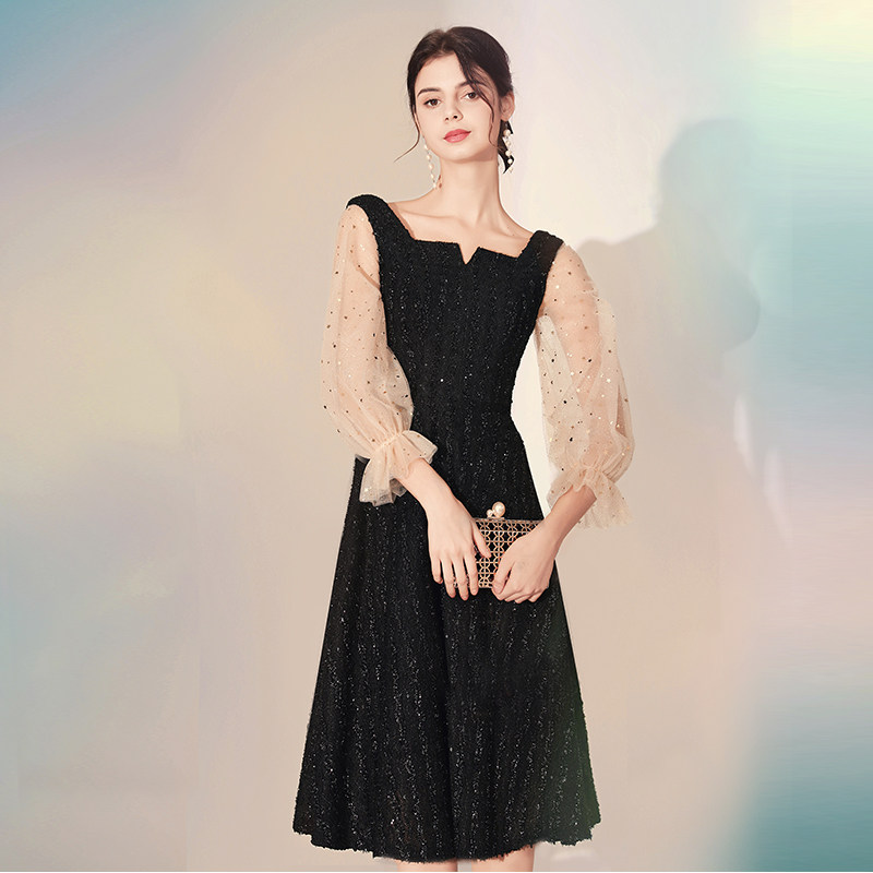 Black banquets small late gown dresses dresses dress women's spring annual conference French style famous students foreign dress can wear temperament