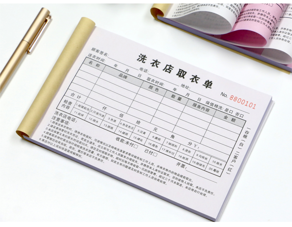 Dry cleaners pick-up list laundry list receipt UCC special voucher billing this laundry receipt list clothes list