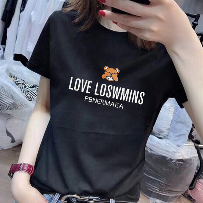 European station summer t-shirt women's bear European goods slim new round neck white short-sleeved cotton t-shirt top tide