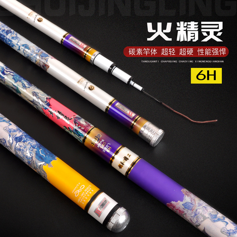 Black Pit Fire Elf Fishing Rod 19 Adjustment Super Hard Carbon Rafi Rod Carp Rod Fishing Rod Hand Rod Flying Fish 6H Taiwan Fishing Rod Fish