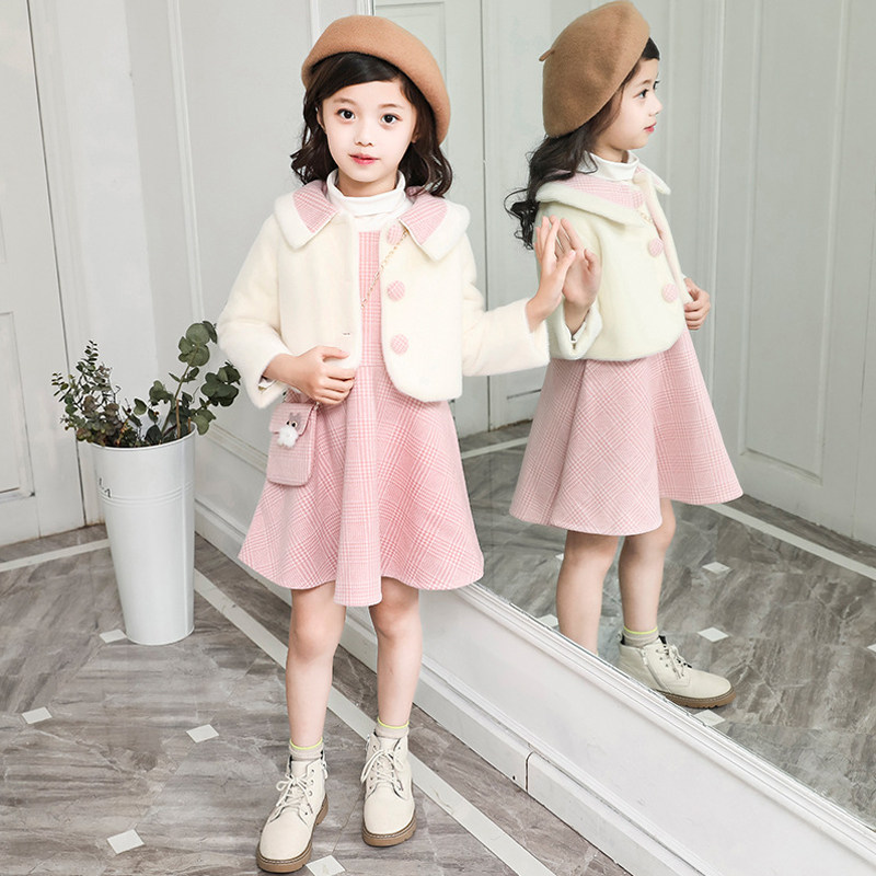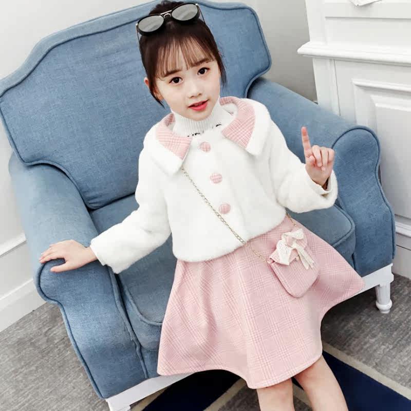 Girls Feret Suite 2021 New Fall and Winter thickening children's clothes two - piece Korean edition warm