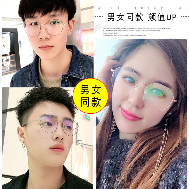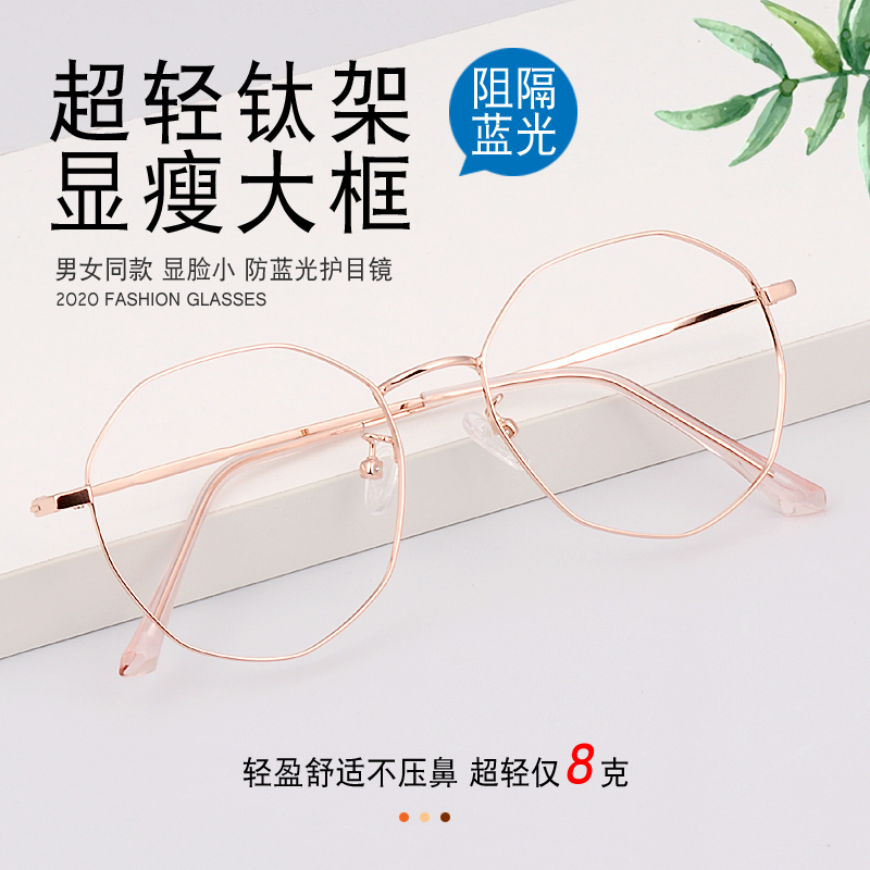 Pure titanium glasses female net red myopia anti-blue light anti-radiation degree flat eye protection male large frame discoloration black frame