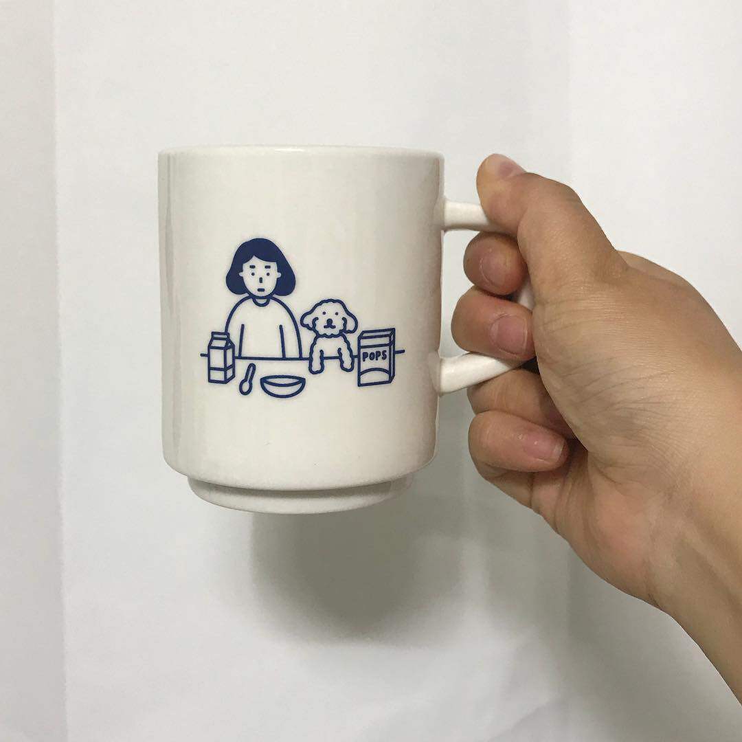 ES) Korean hand-painted cartoon illustration pattern petty bourgeoisie ceramic mug ins simple coffee cup breakfast cup