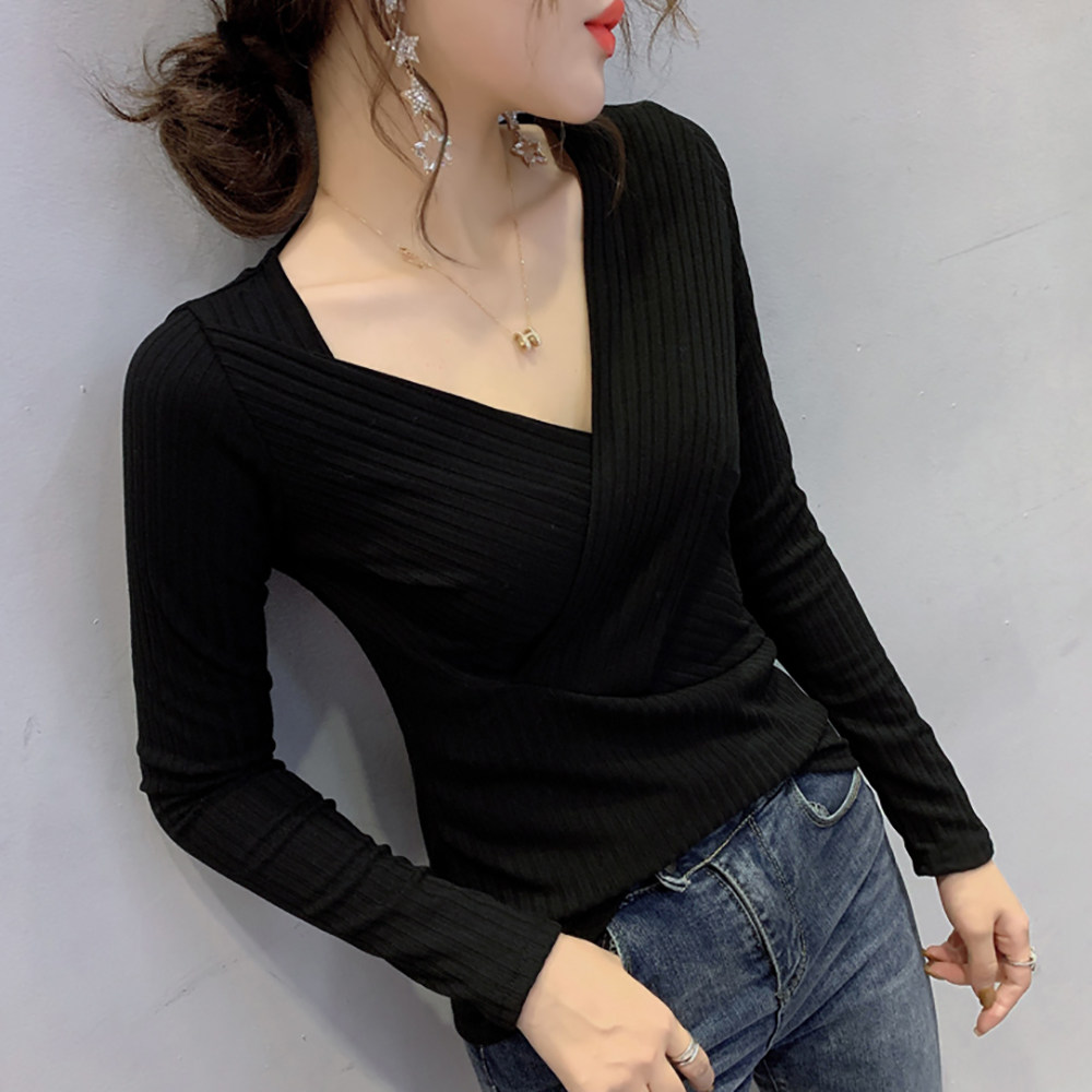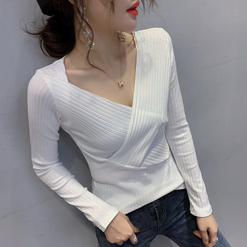 Europe station 2021 autumn winter clothing the new women's stock Eurostock tide V neckline T-shirt woman long sleeve 100 hitch blouses undershirt