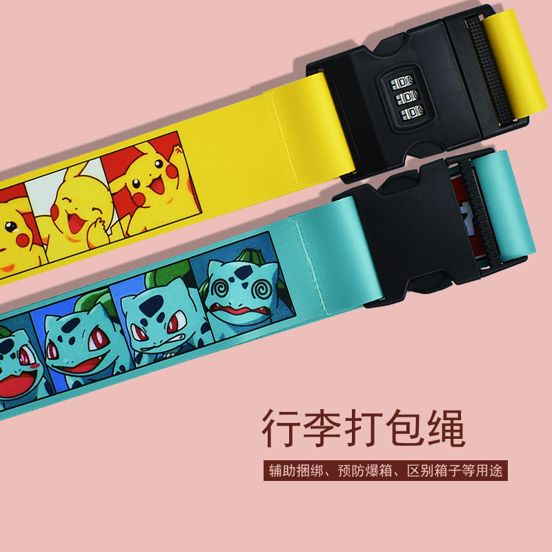 Suitcase bag with suitcase bundled with suitcase with one cross fixed tightness rope thickened cartoon cute leather kachu