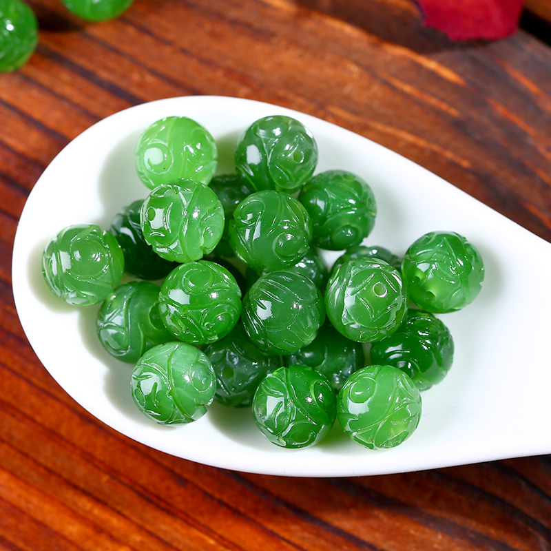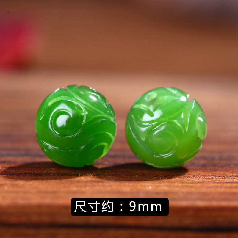 Natural Hetian jade jasper back pattern beads single beads loose beads accessories 9mm jade article Wenwan multi-treasure bracelet diy accessories