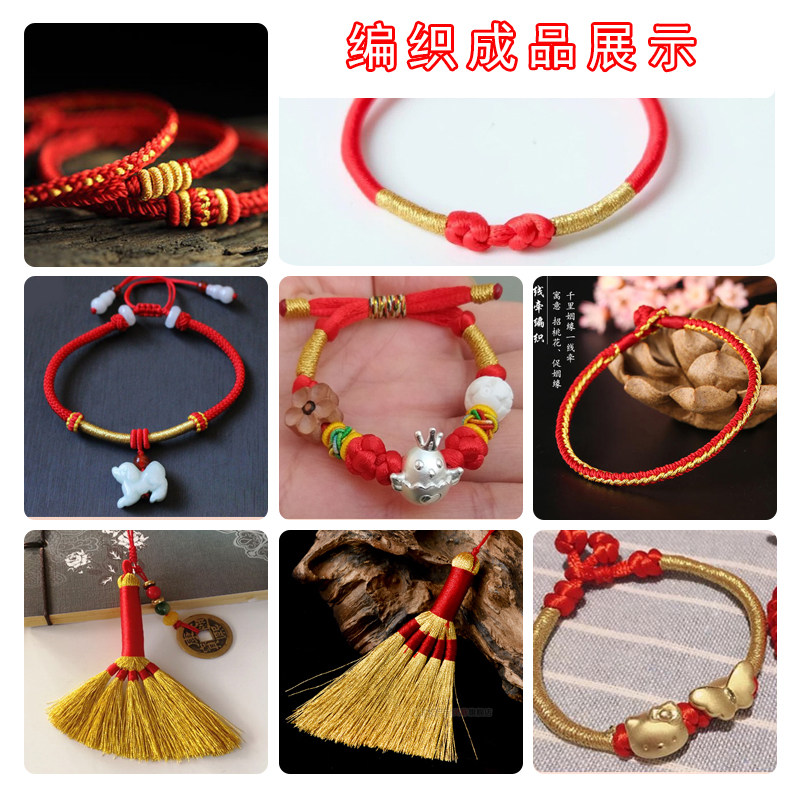3 strands of gold (small roll) about 150 meters long 3 strands of silver (small roll) about 150 meters long 6 strands of gold (small roll) about 90 meters long 6 strands of silver (small roll) about 90 meters long 9 strands of gold (small roll)
