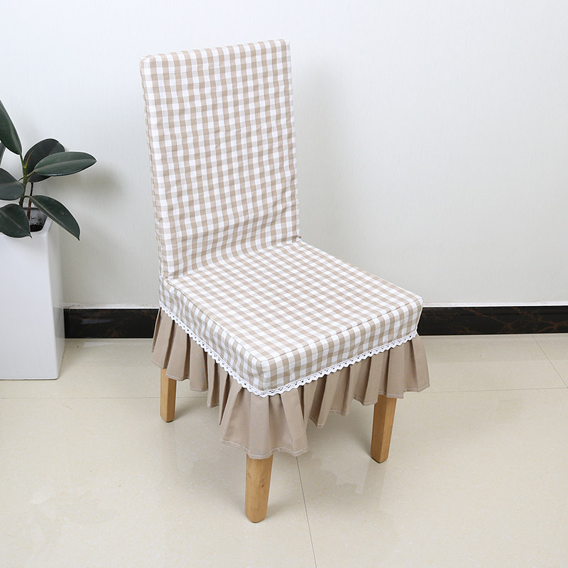 One-piece chair cover Fabric yarn-dyed lattice chair cover stool cover Home hotel chair cover custom