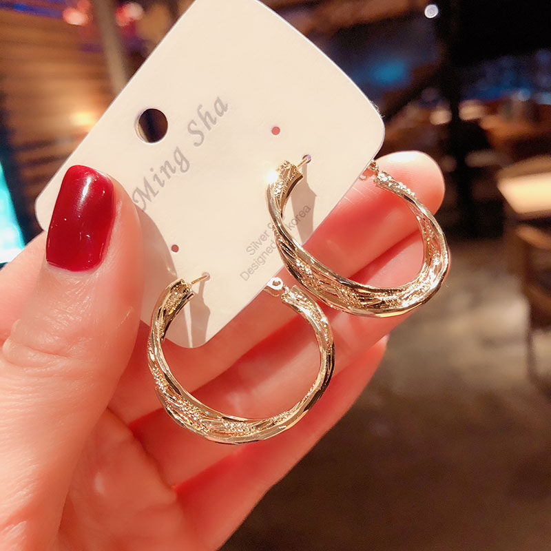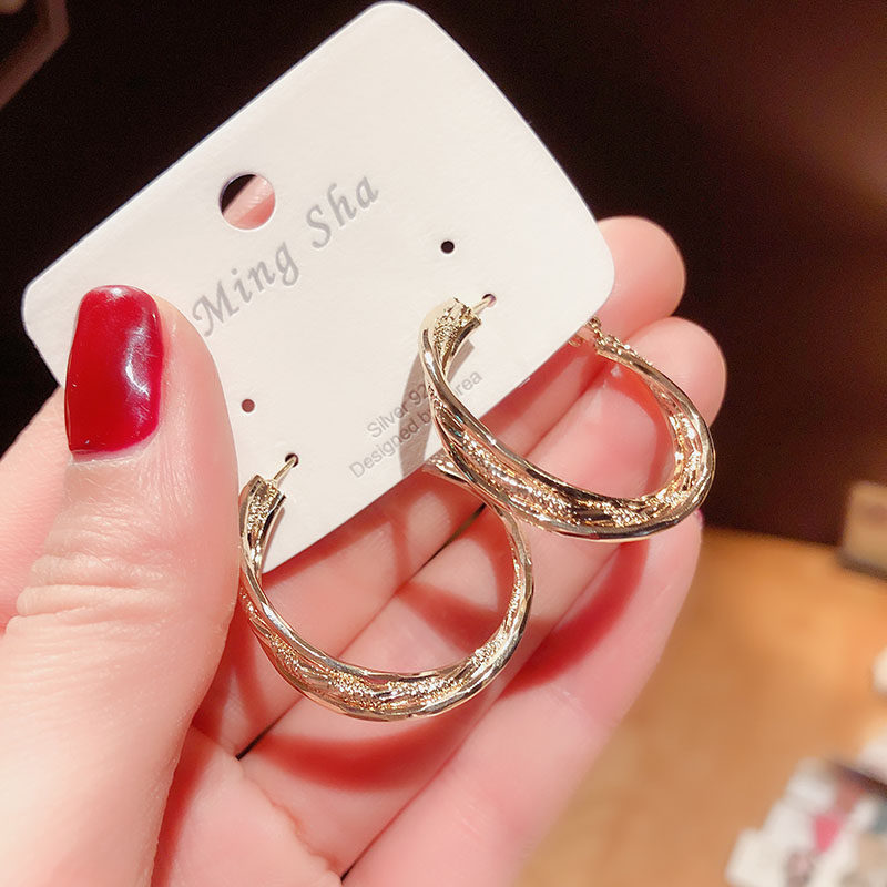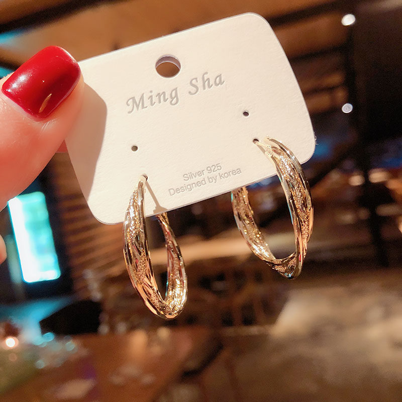 South Korea's Dongdaemun design sense 925 silver needle metal earrings temperament cold wind hoop earrings female simple ear acupuncture