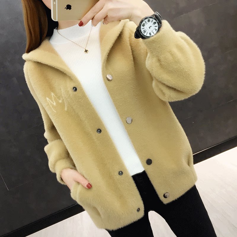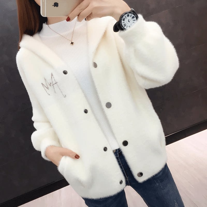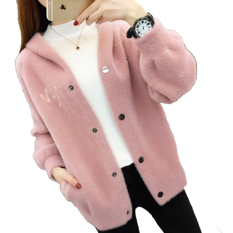 European pink cardigan sweater imitation mink velvet jacket women's 2021 new autumn/winter fashion versatile thick short