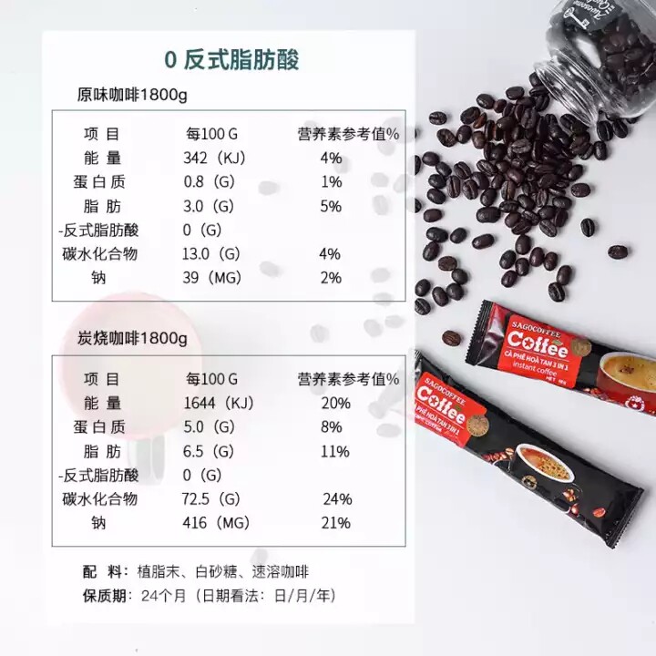 Vietnam imported Saigon coffee three-in-one instant coffee powder original flavor 100g Charcoal roast flavor 100g Total 200 pieces