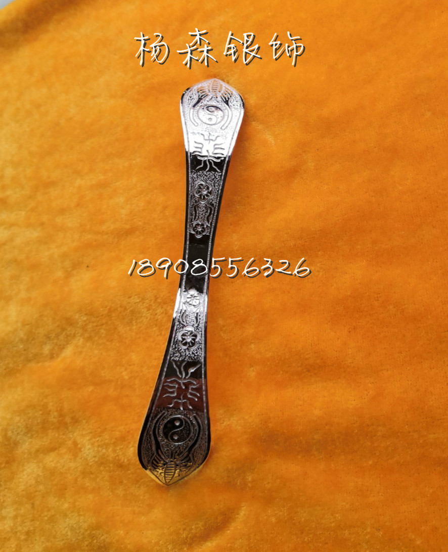 9999 pure silver Tai Chi flat square hairpin double-pointed hairpin ancient style hair accessories original pure hand-made customization