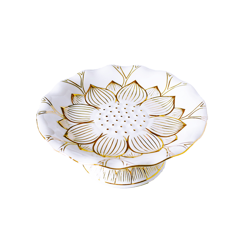 Rich Lotus Offering Plate for Buddha Fruit Plate Ceramic Buddha Front Tribute Pan Buddha Hall Shrine offering Guanyin Fortune God Fruit Plate Buddha Tool