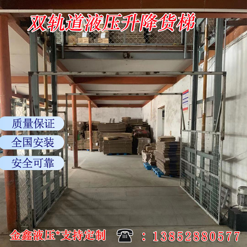 Double track freight elevator electric hydraulic lift guide rail platform workshop elevator restaurant food delivery machine small monorail