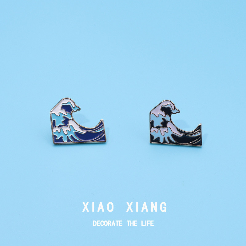 Let's watch the sea waves coming brooch men's and women's couples metal badges clothes collar needle buckle accessories small accessories