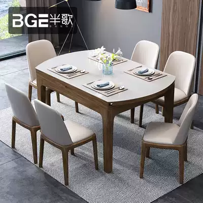 Half-song Nordic dining table and chair combination retractable dining table Modern simple round table folding table tempered glass