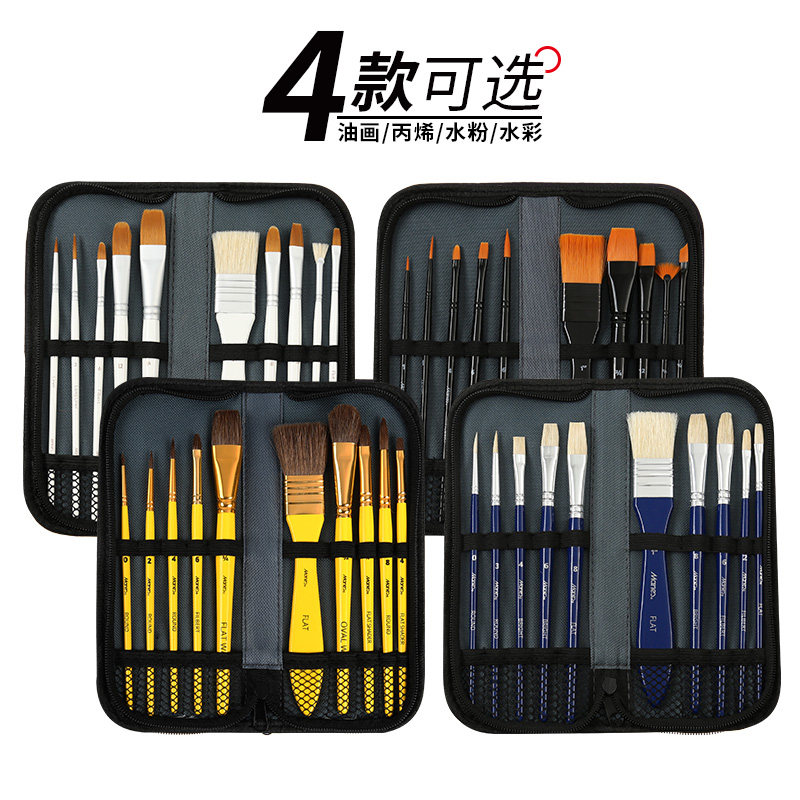 Watercolor yellow rod brush 11-piece set G1111(including painting bag) Oil painting blue rod brush 11-piece set G1711(including painting bag) Acrylic black rod brush 11-piece set G1611