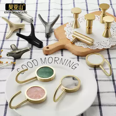Light luxury shell punch-free brass hanging hook Nordic entrance wall-mounted black pure copper clothes hook creative decoration clothes and hats