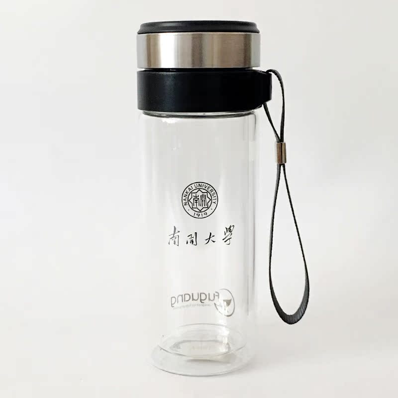 Nankai University classic double-layer glass tea cup transparent thermos cup 304 food grade stainless steel filter new product