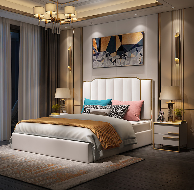 Modern American leather bed Hong Kong-style light luxury bed net red double bed simple modern atmosphere bedroom wedding bed customization