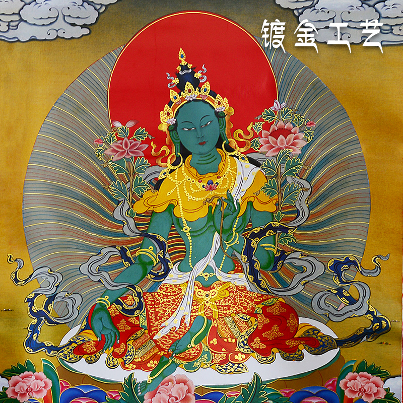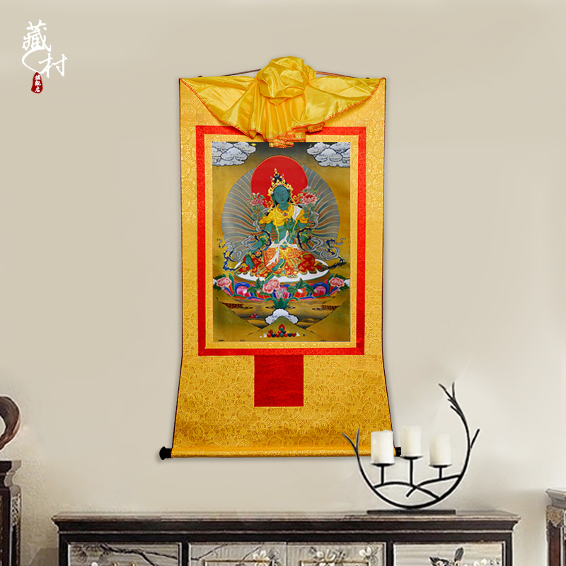 Tibetan village green mother Buddha Thangka Tantric Buddha Hall dedicated Bodhisattva portrait Tibetan style living room background wall painting