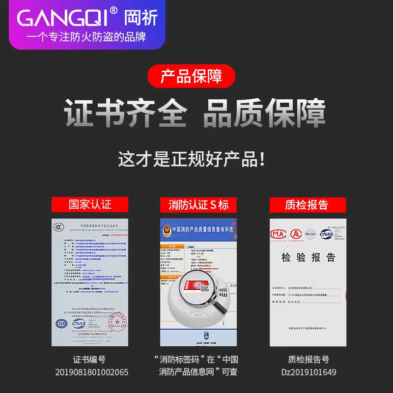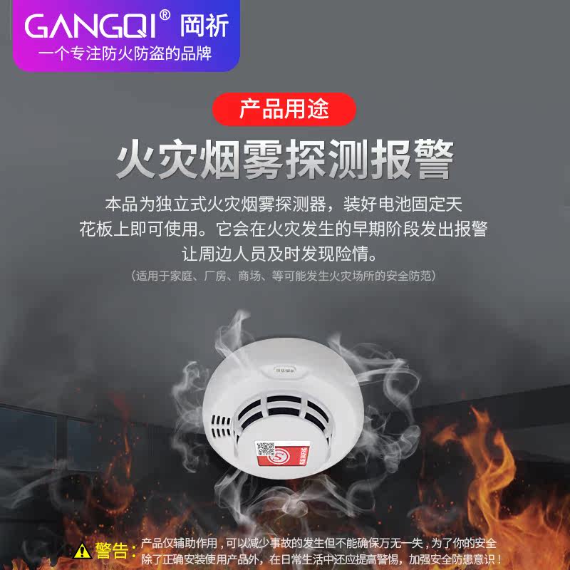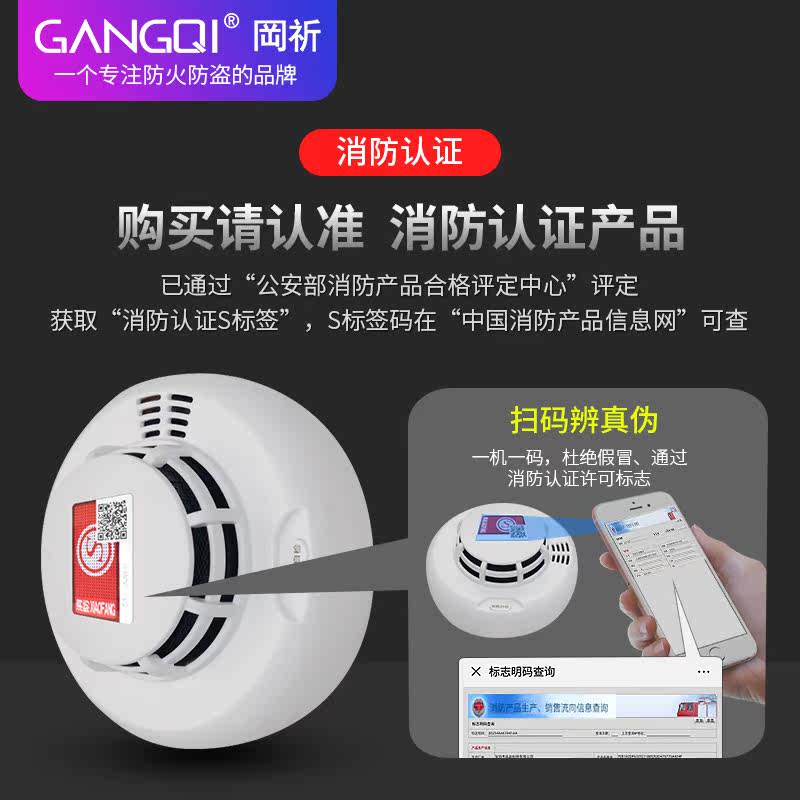 Gangqi smoke alarm fire special fire smoke detector 3c certified commercial household induction smoke detector