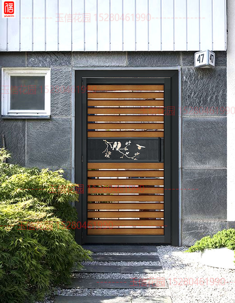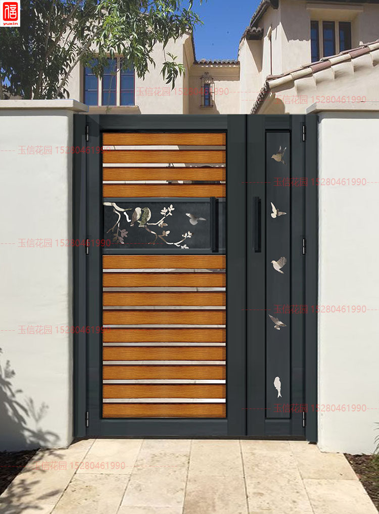 Custom-made wood grain decoration villa courtyard door courtyard door garden door aluminum alloy outdoor door courtyard double door single door