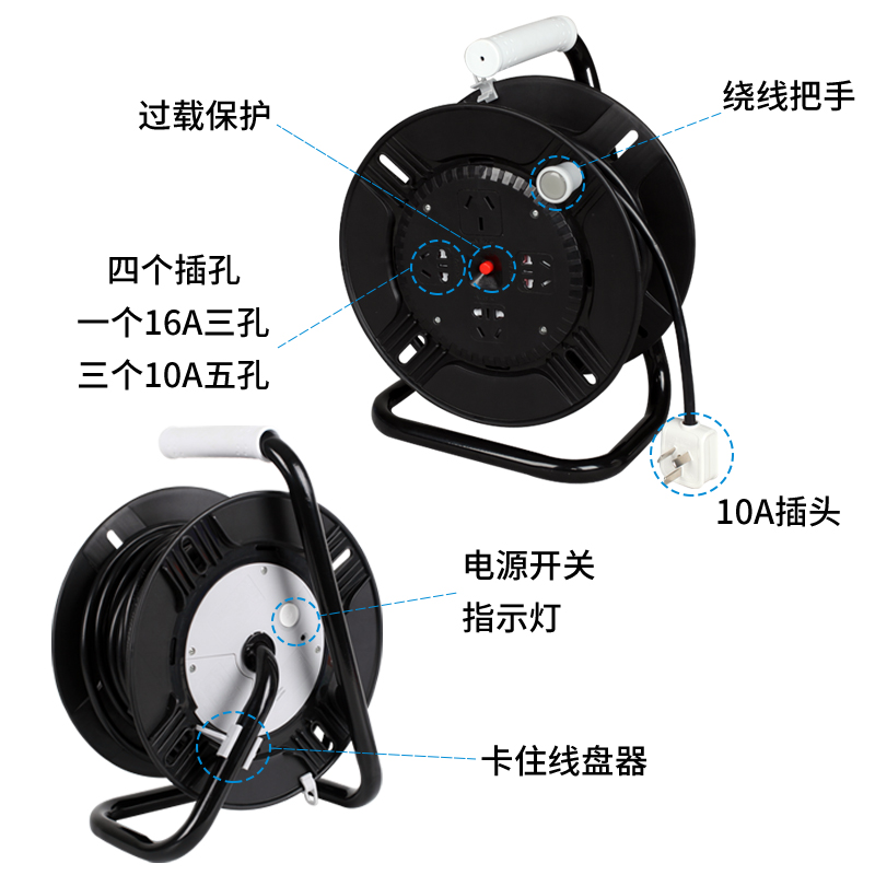 Vision wire reel empty reel socket drag wire reel reel reel winding cable ultra-long line 3 core 10m20m 50