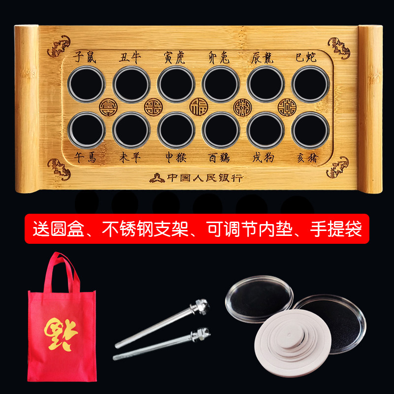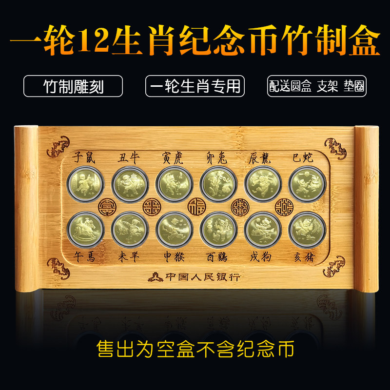 Round of zodiac coins Commemorative Coin Bamboo Suit Collection Protection Round Case 12 Fitting 1 Yuan Commemorative Coin Coin box