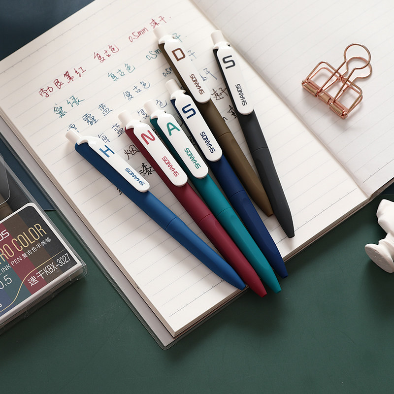Press the gel pen ins cool wind student with cute creative water-based pen retro color pen black red 0 5 Quick-drying ink sex hand account multi-color note taking special ink blue simple