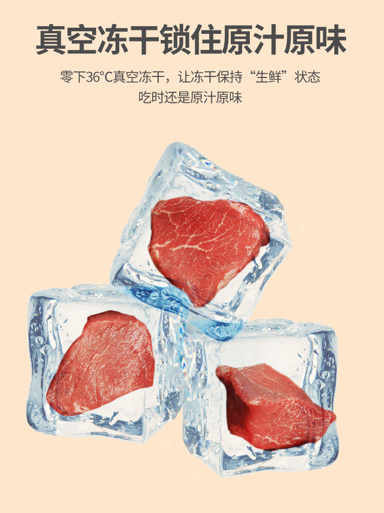 Freeze-dried beef cubes 50g (selected and minced) Freeze-dried beef cubes 100g (selected and minced) Freeze-dried beef cubes 250g (selected and minced) Freeze-dried beef cubes 500g (selected and minced)