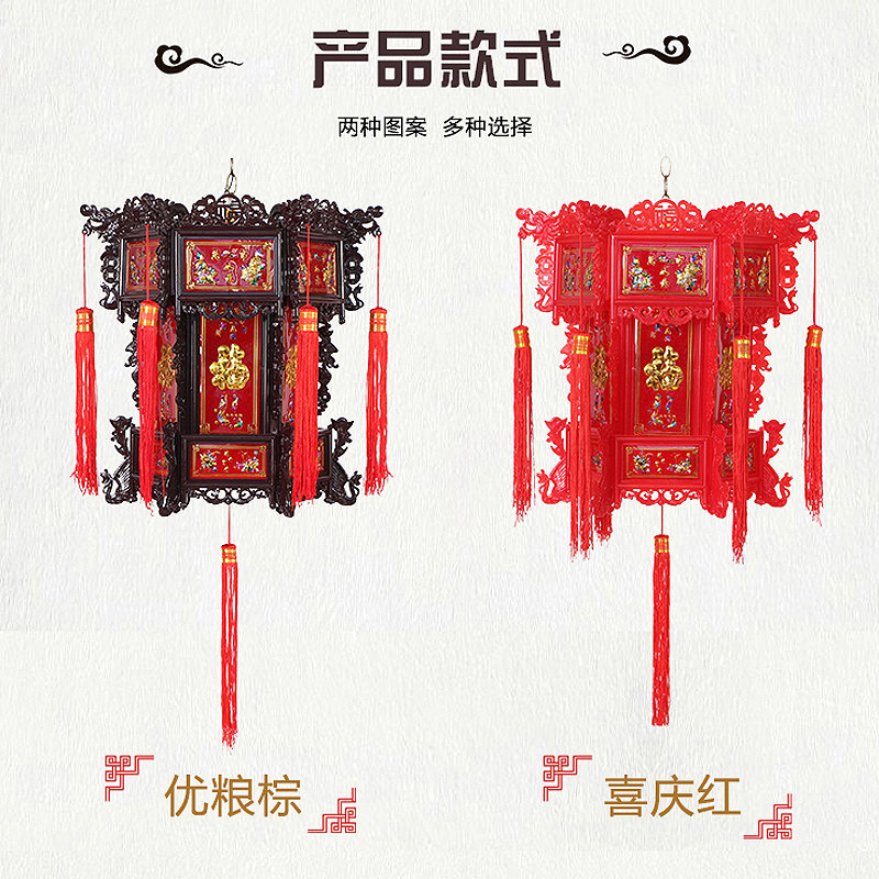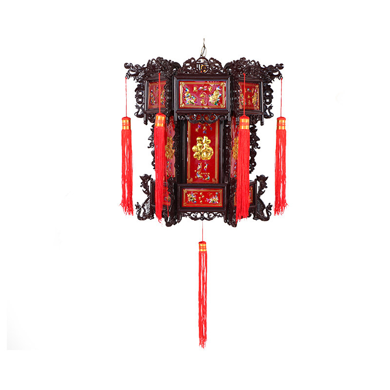Festive outdoor balcony lamp hanging antique plastic imitation solid wood hexagonal palace lamp red lantern 1186875-F7E4