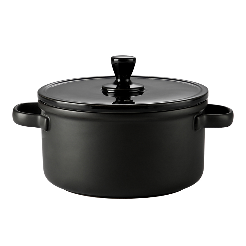 Black crystal stove casserole heat-resistant stone flat-bottomed shallow pot ceramic pot stew soup open fire household gas claypot rice small casserole